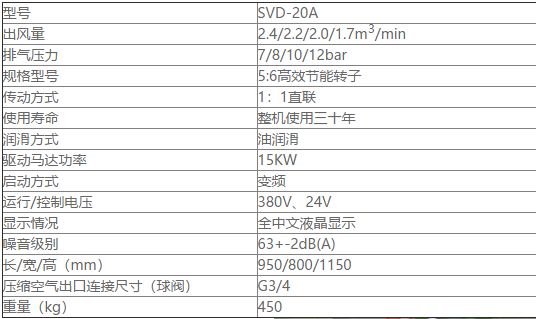 昆能變頻螺桿空壓機參數(shù)